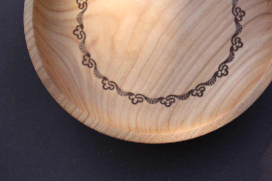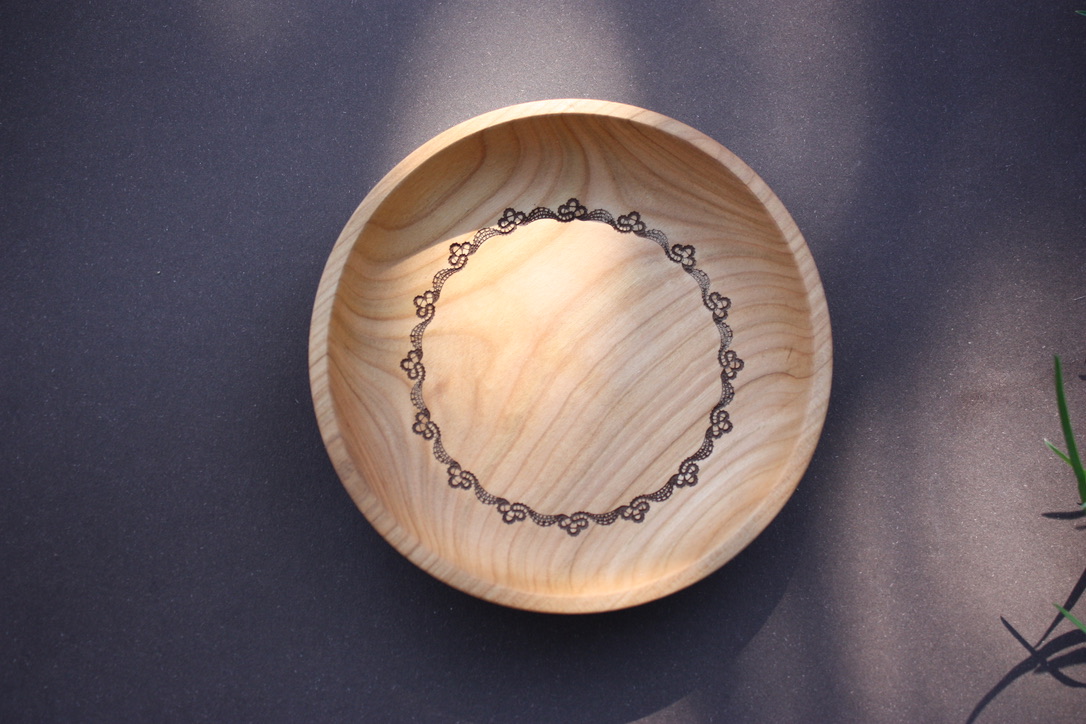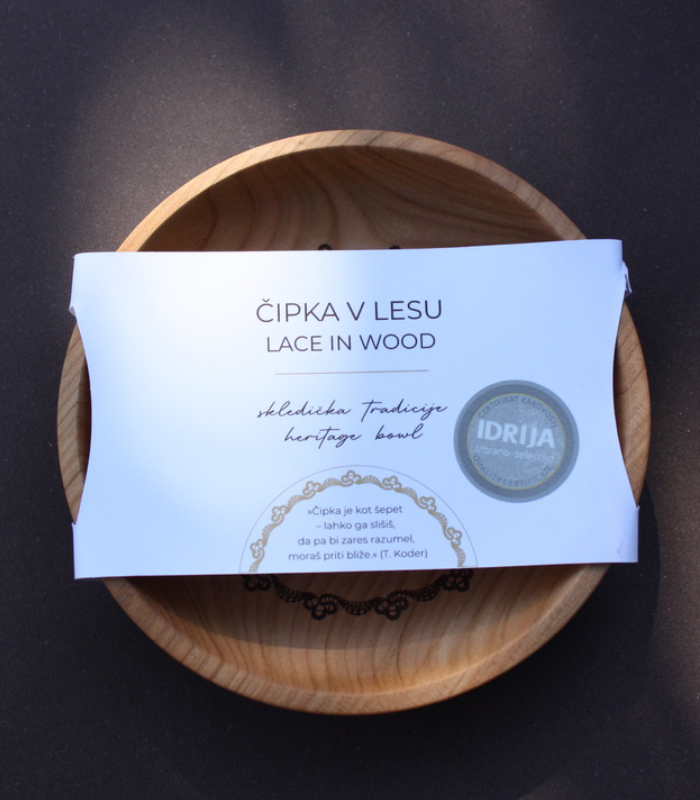 Gravura idrijske čipke ni le dekoracija – je zgodba, vtisnjena v les. Vsak kos nosi unikaten vzorec, ki dopolnjuje naravno strukturo lesa in izžareva izjemno pozornost do detajlov.
